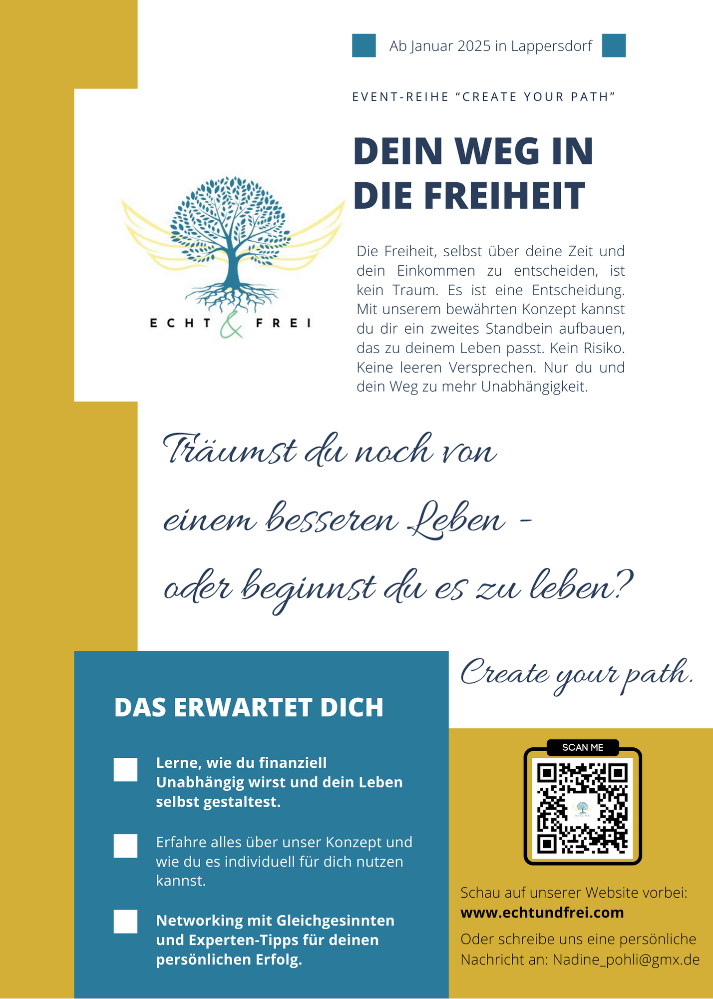 "Echt & Frei inspiriert Menschen, ein authentisches, unabhängiges Leben zu führen, in dem finanzielle Freiheit, persönliches Wachstum und Balance im Mittelpunkt stehen."